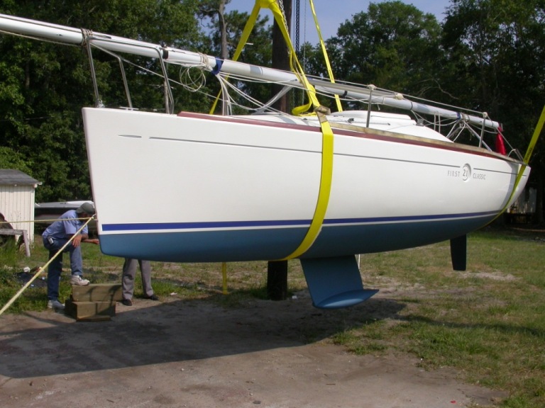 The attached photos show my LIKE NEW Classic 21 being hoisted and slung for her inaugaral bottom painting. In these perspectives she looks gorgeous!