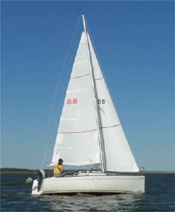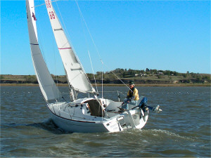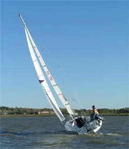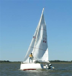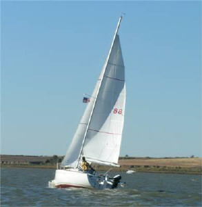 Some photos of Jay Sawyer solo sailing #88 "Courte Jupe" (Short Skirt) last Fall at Harlan Lake, Nebraska